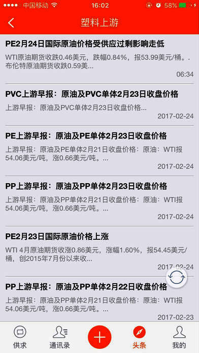 3、每日发布行情分析,上下游信息,企业动态,外盘资讯,装置动态,期货报告等塑料行业资讯。