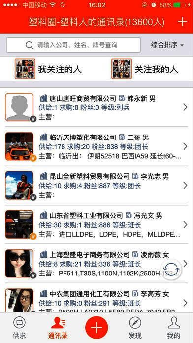 1、塑料人的通讯录,收录海量塑料行业从业人员联系方式;
