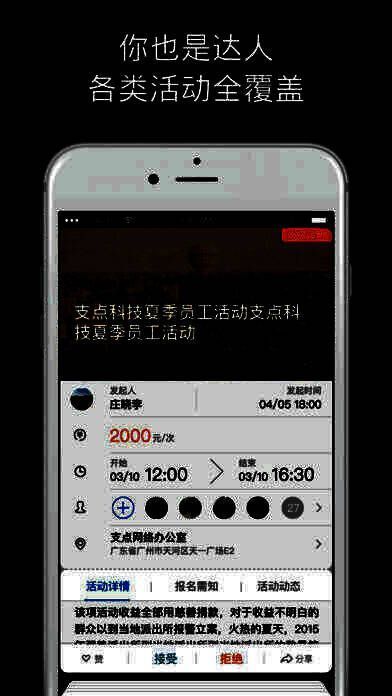 1、从大型活动到朋友聚会,筹备进度实时掌握,过程和成果实时呈现轻松分享,让您轻松组织活动的同时参加您感兴趣的活动;