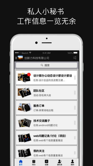 3、创新的以社交化的方式组织小伙伴们成立项目组,计划管理实时掌握,任务流程动态接入,项目简报发布简单,项目结束档案留存。