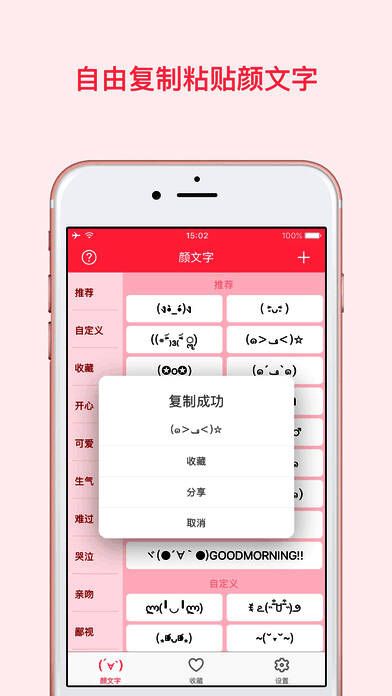 5、收藏功能方便将你喜欢的颜文字表情添加到收藏夹。