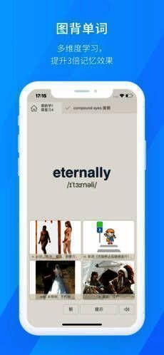百词斩词典app提供了图文识记单词的方法,并有部分单词配有短小视频。提高了软件的趣味性,也符合语言的习得规律。