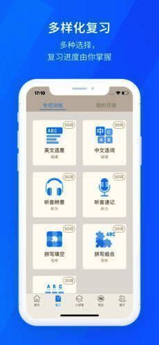 1、根据学习目标,百词斩将每日需学习的单词、需复习的单词分配好并置于应用左上角显示;
