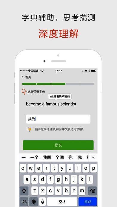 用户通过字典辅助,独立思考把语块翻译成简洁地道的中文,可以检测意思是否理解正确,提高翻译能力。