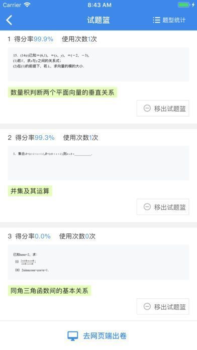 2、增加试题篮功能,实现APP和网页端数据同步;