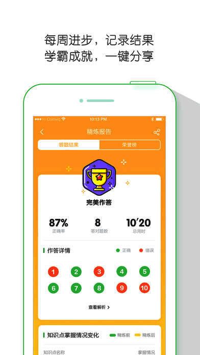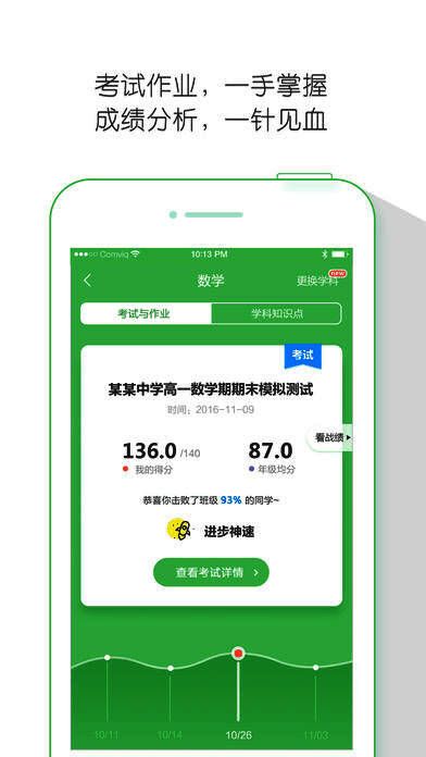 【学科学习动态一手掌握】学习成绩走势及时知晓,更了解自己当前的学习状态,包括自己相关知识点的掌握情况。