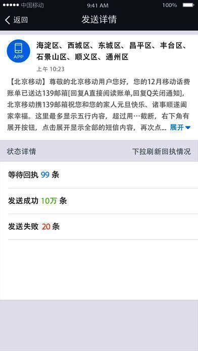 发送详情一目了然,短信回执实时刷新,短信送达情况尽在掌握。