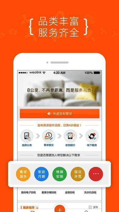 想不想要一款生活服务类的软件;比如保洁服务,搬家服务、家政、维修为一体的好软件;《8公里》就是小编今天推选给大家的好帮手,有了这款神器在也不用自己动手了,软件会把您完完全全的处理好。