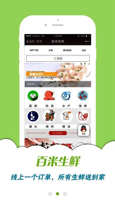 《百米生鲜》是一款专业的生鲜购买配送APP,这款软件只需你在APP上下一个订单,所选的生鲜送快速准确的送到你家,再也不用你出门挑选,如果喜欢就下载使用吧。