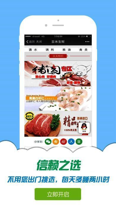 1、百米生鲜配送拥有冷链物流仓储配送体系,保证食材的新鲜安全;