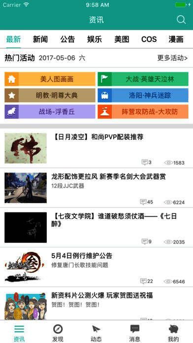 1、资讯平台,囊括剑网3各类资讯如最新官方新闻,官方公告,游戏攻略,同人COS,游戏视频,游戏美图,游戏漫画等;