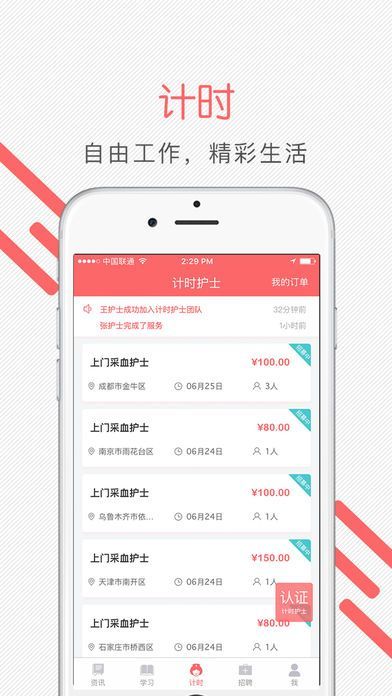 与数百家护理机构合作提供数以万计的全职、兼职工作机会,满足护士们工作、创收需求。