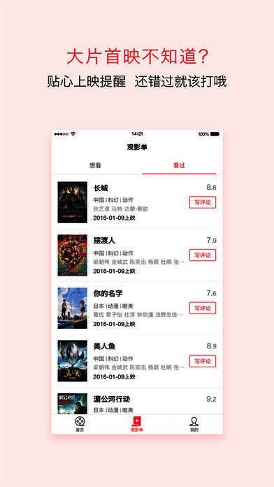 2、大片首映不知道? 贴心上映提醒 还错过就挨打哦;