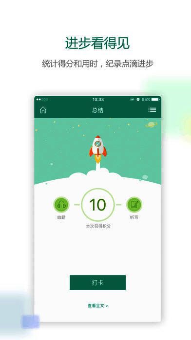 还有,每篇文章你的得分,重听次数,都会被记录下来,日积月累,体现你的进步。