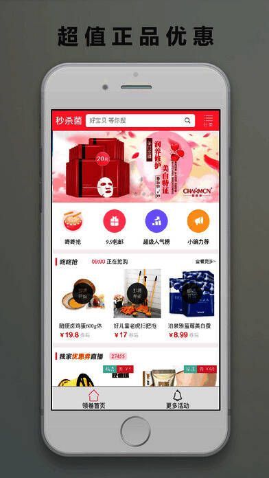 《秒杀菌》是一款功能丰富的购物APP,包含限时疯抢,9.9包邮正品优惠等,喜欢购物的你千万不要错过,简洁的页面简单的操作都是你必选的理由,不要犹豫赶快下载开始抢购吧。