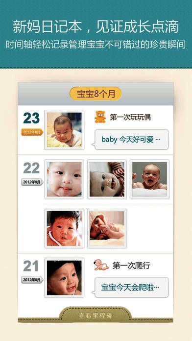 1、独特的新妈日记本时间轴与自动提醒功能让你轻松记录并管理宝宝每一个不可错过的珍贵瞬间,见证你与宝宝一同成长点滴;