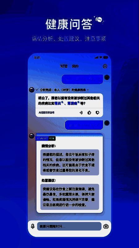 该应用采用模拟医生问诊的方式,结合用户的症状描述、病史信息及家族遗传背景等数据,进行循证式健康评估,并生成个性化的建议方案。内容涵盖用药禁忌查询、饮食调理推荐、运动计划建议等多个方面,真正实现“私人健康顾问”般的贴心服务。