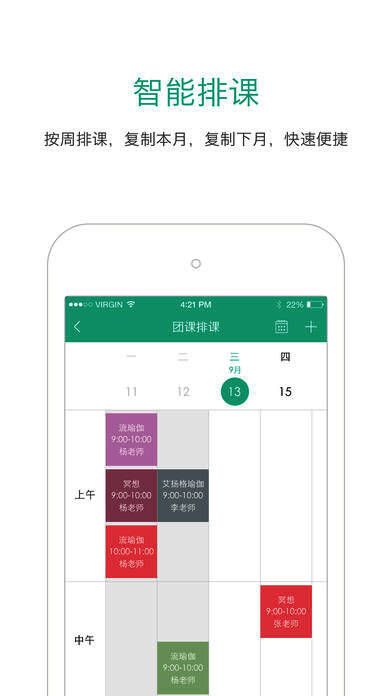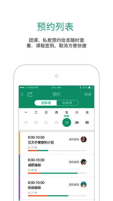 2、课程管理:团课、私教课在线排课、课表管理等;