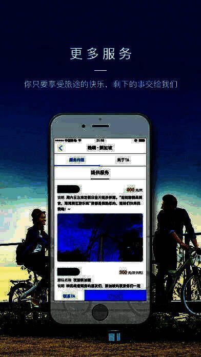 2、当地人:提供全球数十个国家或地区数百名优秀当地人帮您解决行程需求,您可以根据自己的性格、喜好,以及行程需要找到合适的「当地人」,与他们直接沟通,确定细节,并通过APP预订他们提供的当地旅行服务,过程简便!「去兜兜」优秀的当地人热情好客而又个性鲜明,他们熟知当地文化,为游客提供良好的当地旅行服务,让远道而来的客人们在自己的带领下,领略脚下之地的魅力;