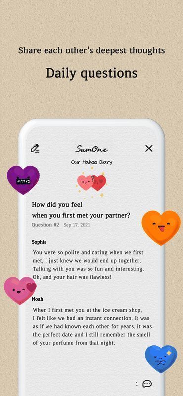 除了基础的情侣互动功能外,SumOne还提供了一系列特色服务,如共享日记、随机问题生成器、位置共享以及私人表情包等。这些功能不仅促进了更深层次的沟通,也让每一次互动都充满新鲜感和期待。