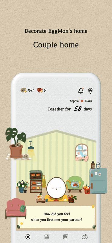 SumOne苹果版下载提供了大量的虚拟道具和家饰品,供用户自由选择与搭配。这些装饰不仅丰富了虚拟空间的表现力,也为情侣之间的互动增添了更多趣味。从温馨的小屋布置到个性化的礼物赠送,用户可以根据自己的喜好打造独一无二的恋爱场景,营造出专属的情感氛围。