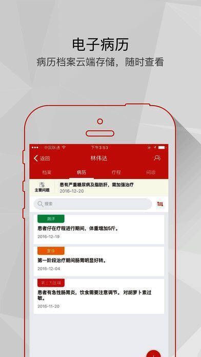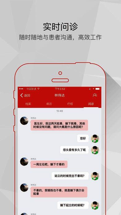 1、实时问诊:随时随地与患者沟通,高效工作;
