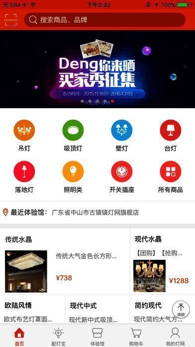 具有配灯宝、查看附近体验馆信息、商品搜索、浏览、购买、支付、收藏、物流查询等在线功能,成为了用户方便快捷额生活消费入口。