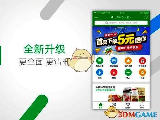 与同类医药手机应用软件相比,药房网商城App还具有一项“附近找药”功能,可根据用户所在地,自动搜索用户周边药店药房位置,不仅为用户提供了在线购药服务,同时也方便了用户日常的家庭买药。