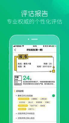 数据报告:通过基线评估,我们会为您提供关于认知模式、人格和性格优势的分析报告,根据您的典型活动和抑郁症焦虑症问题制定咨询计划。在接下来的每周咨询过程里,我们也会持续跟踪你的手机使用行为和语言等数据,为您免费提供每周和每月的分析报告。