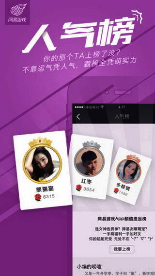 通过真人认证,参与游戏人气榜竞逐。只需要上传您的真实头像及生活照,通过验证后即可成为人气榜一员,加好友送鲜花,登上榜单之巅,成为每周网易游戏App人气之王吧。