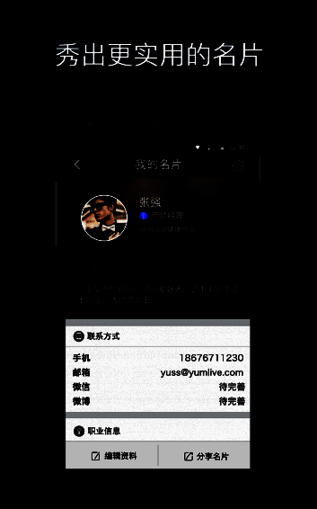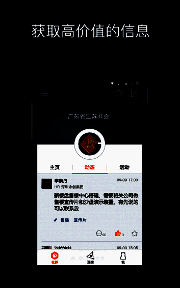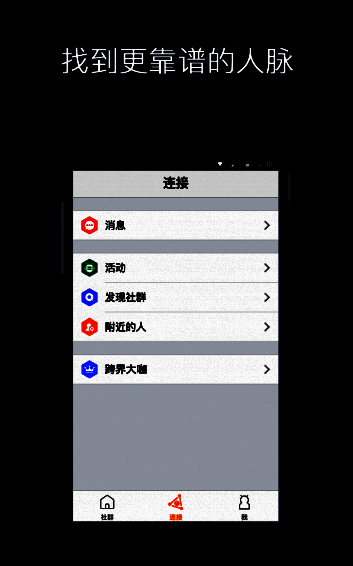 4、不错过每一个想结识你的人,个性名片全方位展示,点亮人脉网络。这里拒绝社群放养,让您的点滴关注和每次沟通都有价值,通过线上线下结合,点亮你的社交网络。