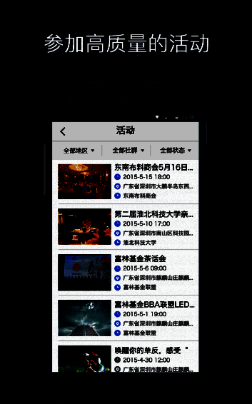 3、及时了解社群活动,一键轻松报名,多线互动,激活人脉;