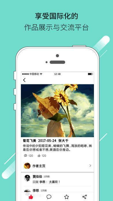 分享功能,将它人的作品进行分享给好友欣赏,邀请好友评论;