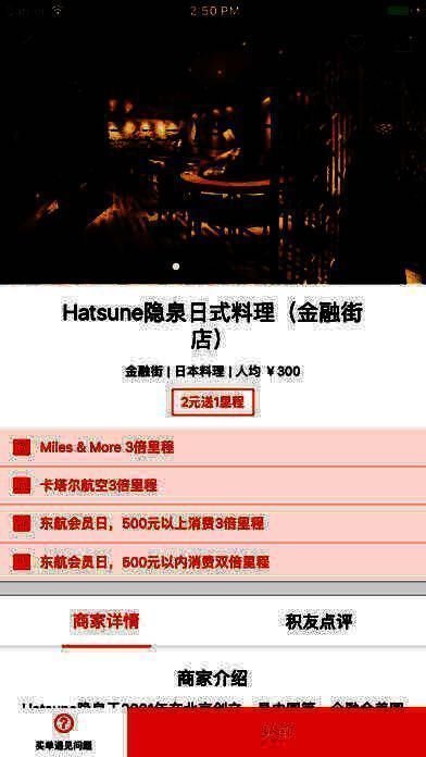3、覆盖范围广:已覆盖国内主要城市,为您提供中高端餐厅、精品及奢华酒店、高品质Spa、高端玩乐项目等优质产品,让您无论吃喝玩乐都能快速积累里程。