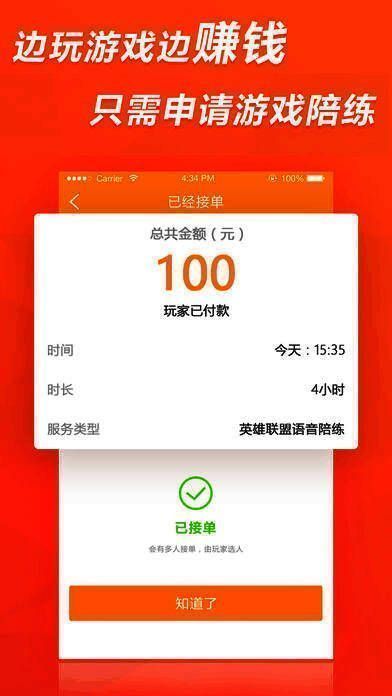 申请成为陪练,边玩游戏边赚钱,随时申请提现。