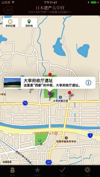 3、本手机应用可以帮助您畅享日本遗产-太宰府之旅。在每个景点使用本应用会有惊喜哦!?诚挚邀请您体验“西都”的魅力。