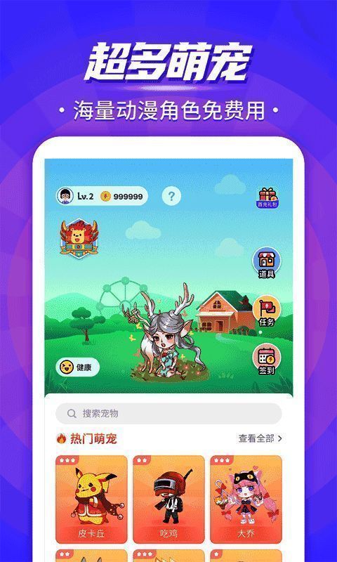 app内设有超过200种宠物形象,涵盖二次元人物、Q版偶像、可爱动物等多个类型,满足不同用户群体的喜好,每位用户都能找到自己钟爱的角色。