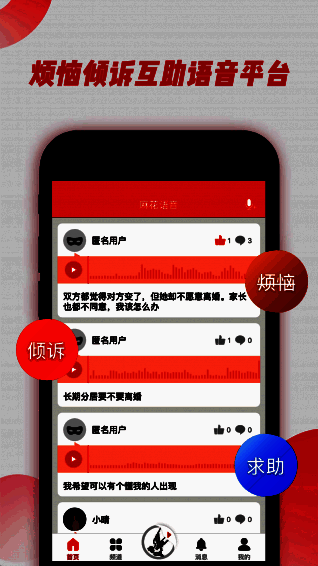 这里纯语音交流,只需用语音录下你的故事,简单好用,免于敲一堆文字,还词不达意。相对于冷冰冰的文字,暖暖的语音关切,更能抚慰受伤的心灵。