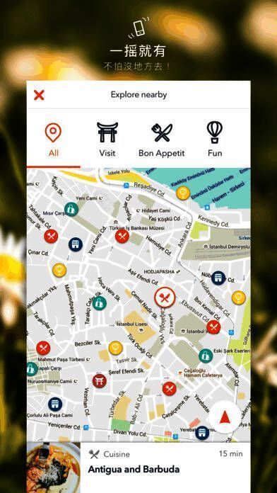2、摇摇探索附近 Explore Nearby,给你数不清的在地旅游灵感;