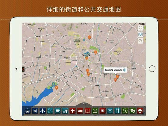 7、在地图上显示公共汽车站、餐厅、酒吧、酒店、医院、博物馆、剧院、以及许多其他交互式旅游信息;