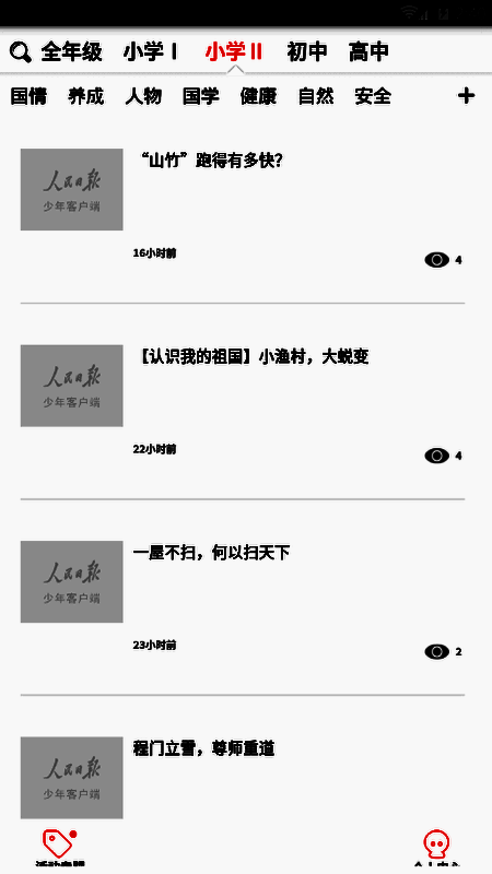 面向全国青少年的《人民日报少年客户端》是一款免费使用的教育类的新闻阅读软件。在人民日报少年客户端软件内,用户可以实时的学习到很多的新知识,丰富的新闻资讯和电子阅读资源供你阅读。软件还会根据孩子的阅读习惯,,智能为孩子推送相关类型的内容,让孩子养成良好的阅读的习惯。
