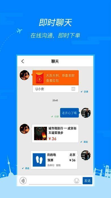 6、【即时聊天】您可以通过发送语音短信、视频、图片(包括表情)和文字,与心仪的向导或好友进行聊天与交流。
