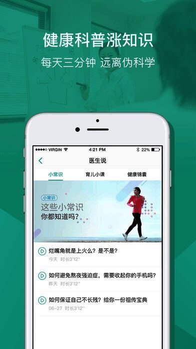 1、朋友圈虚假健康文章太多,来这里可以看看医生写的科普文章,每天学点健康知识;