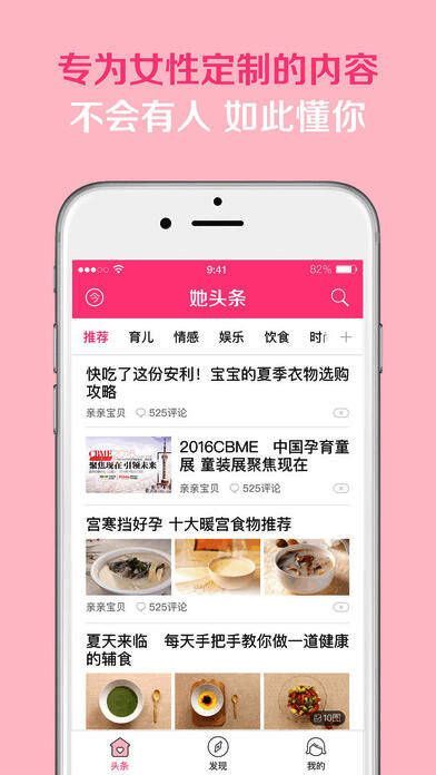 《她头条》是一款十分有趣的女性资讯阅读平台,这款软件是为女性特意制作的,软件收录众多女性感兴趣娱乐和时尚资讯,让身为女性的你尽享娱乐服务,不仅如此,你还可以在这里找到年轻妈妈们最需要的育儿资讯,赶快下载使用吧!