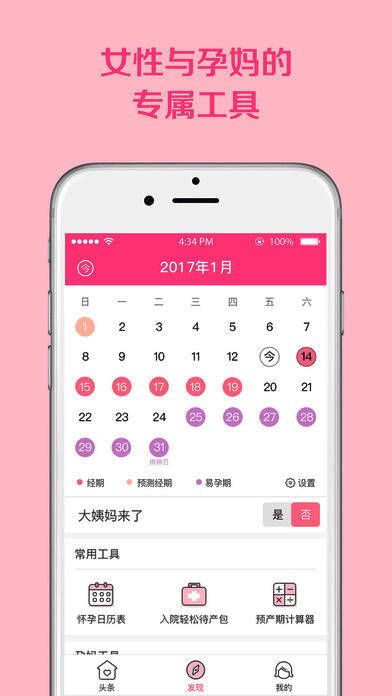 记经期、备孕、怀孕、育儿,开启4大关爱模式。
