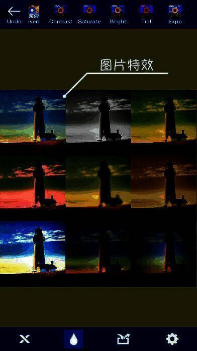 全方位控制您的照片:对比度、饱和度、亮度、曝光、模糊、USM锐化、自然饱和度、暗色、晕影、中间调、亮光、褐色调、色调、色相等;