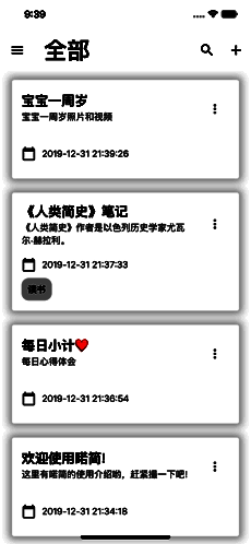 将你的生活记录下来吧!《喏简》是一款非常实用的手机记录的生活服务软件。在喏简app中,用户可以随时记录你的生活中的重要事情以及精彩的美好时刻。更可以用来当做便签使用,重要的事务,不用担心再错过!各种琐事还可以通过卡片的形式记录下来,还能进行分类和便捷等!