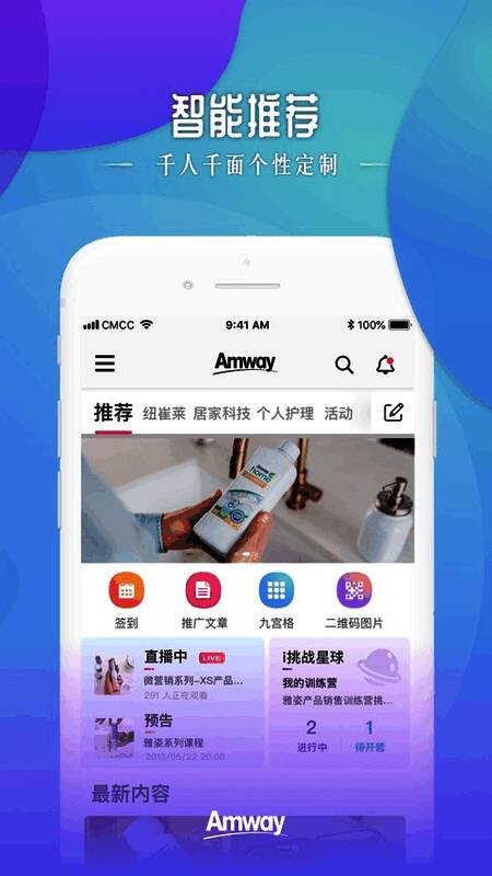 由安利(中国)日用品有限公司打造的《安利头条》是一款为小伙伴们推荐安利的新闻资讯营销平台。用户在安利头条软件内能够体验到千人千面,一人一面的个性化安利!海量的新闻资讯内容,为你推荐各种产品的资讯与新闻。丰富的产品种类,你想要的产品资讯内容这里都有,还有很多的直播互动,热门活动实时收看!
