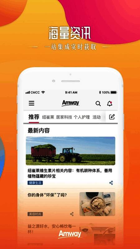 1、安利头条为个性化推荐安利,千人千面的内容,海量资讯内容。