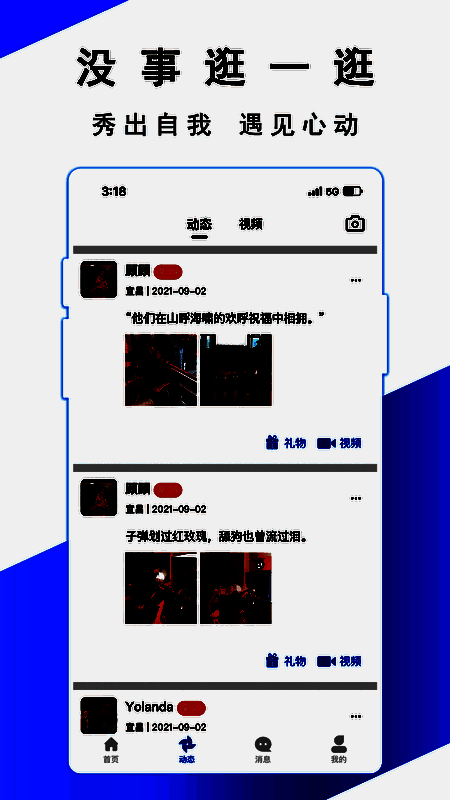 视频聊天与动态分享的场景">